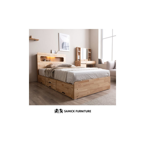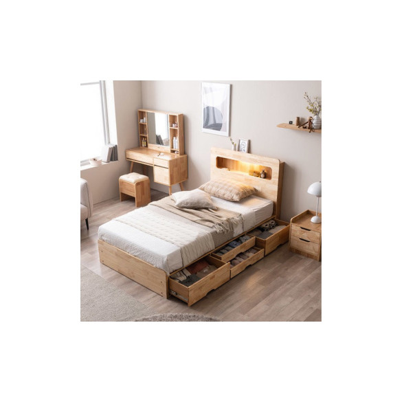 • (쿠폰할인 33.9)포텐 LED 4단 수납 원목 침대(양모 라텍스 7존
