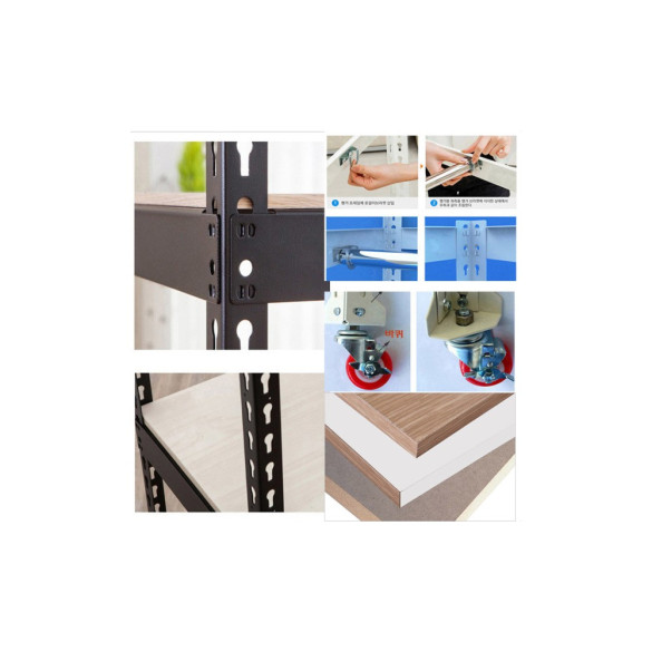 • 무볼트폴던스랙 MDF 양면코팅 바퀴 행거 높이조절나사 받침대 조립식앵글 수납선반 진열장 수납장 KM앵글